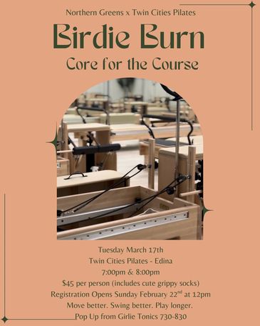 The Birdie Burn is a golfer-focused reformer Pilates class designed to improve mobility, rotational strength, balance, and stability — the exact physical skills that impact your swing, distance, and consistency on the course.