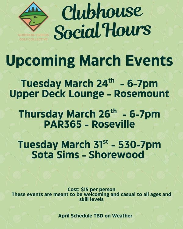Clubhouse Socials are casual, welcoming indoor golf events designed for women of all skill levels, 18+.